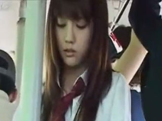 <JKバス痴漢>制服姿の女子校生がエロ事師の手マンで痴漢陵辱!